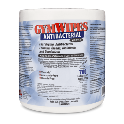GymWipes Antibacterial gym wipes are the #1 selling wipe in the fitness industry and is highly recommended by major equipment manufacturers. Use GymWipes Antibacterial gym wipes to clean and disinfect workout equipment, and washable, hard non-porous surfaces. They can be used on most surfaces in your fitness Facility, health clubs and gyms.